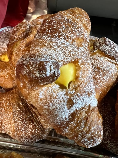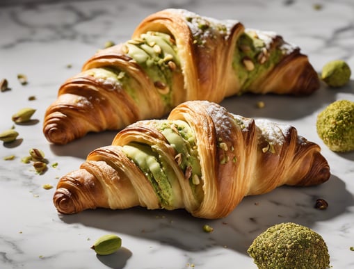 Willkommen in unserem kulinarischen Paradies, wo die zarten Cornetti mit Pistaziencreme, Schockoladencreme oder Vanillecreme auf Sie warten. Diese luftigen, buttrigen Croissants sind nicht nur ein Genuss für die Augen, sondern auch ein Fest für den Gaumen.
